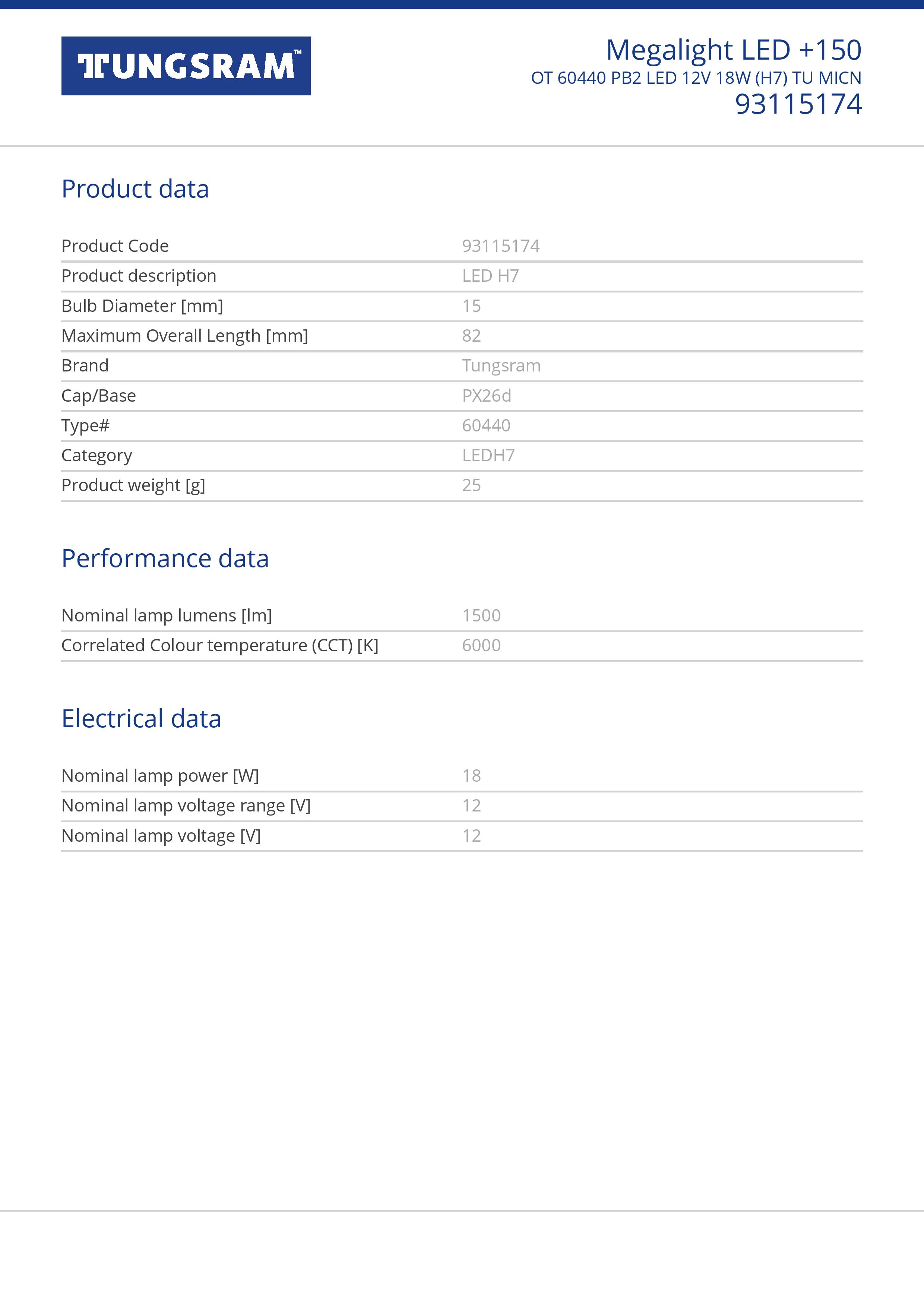 К-кт 2бр. LED Автомобилна лампа TUNGSRAM H7 12V 18W 6000K (пасивно охлаждане)